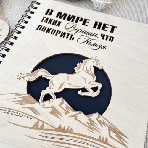 Материал обложки - берёзовая фанера толщиной 3мм, сохраняет натуральную текстуру и запах дерева, экологически чистая и безопасная, идеально отшлифована.