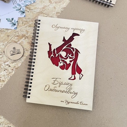 Материал обложки - берёзовая фанера толщиной 3мм, сохраняет натуральную текстуру и запах дерева, экологически чистая и безопасная, идеально отшлифована.